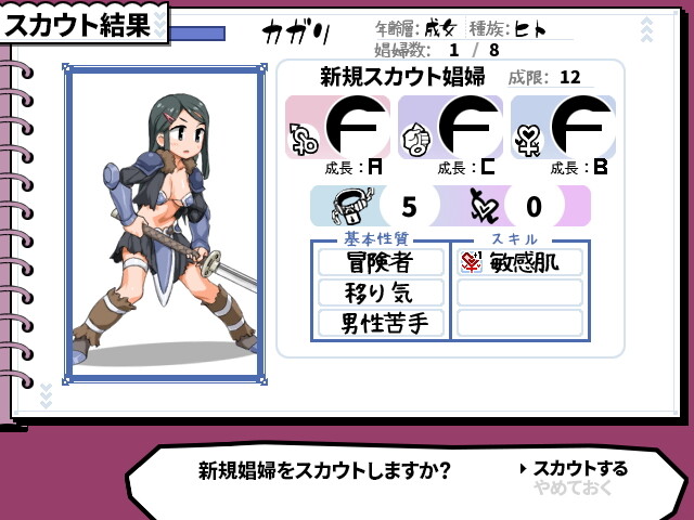 雇った娼婦は働くことで技能がアップしていき娼婦として成長していきます。
