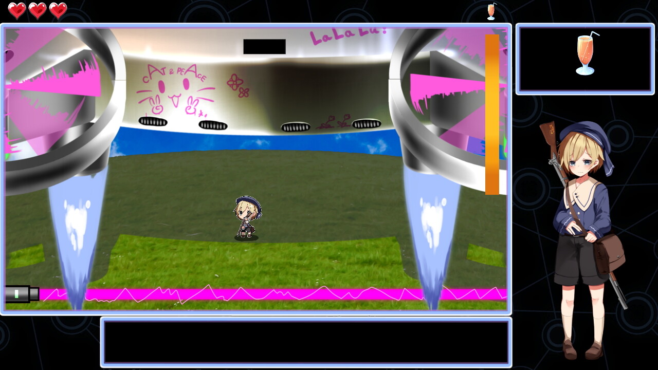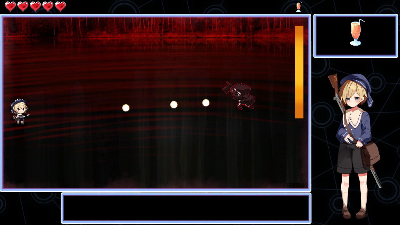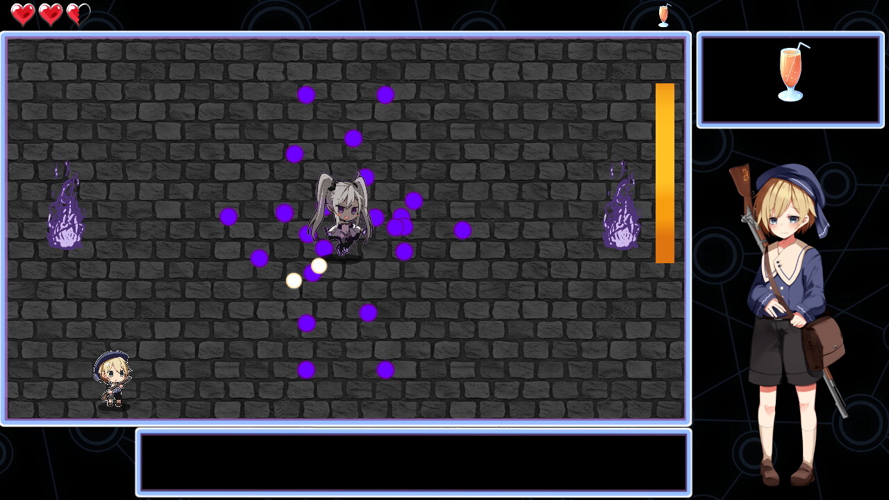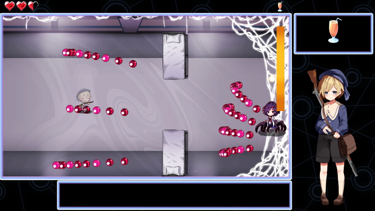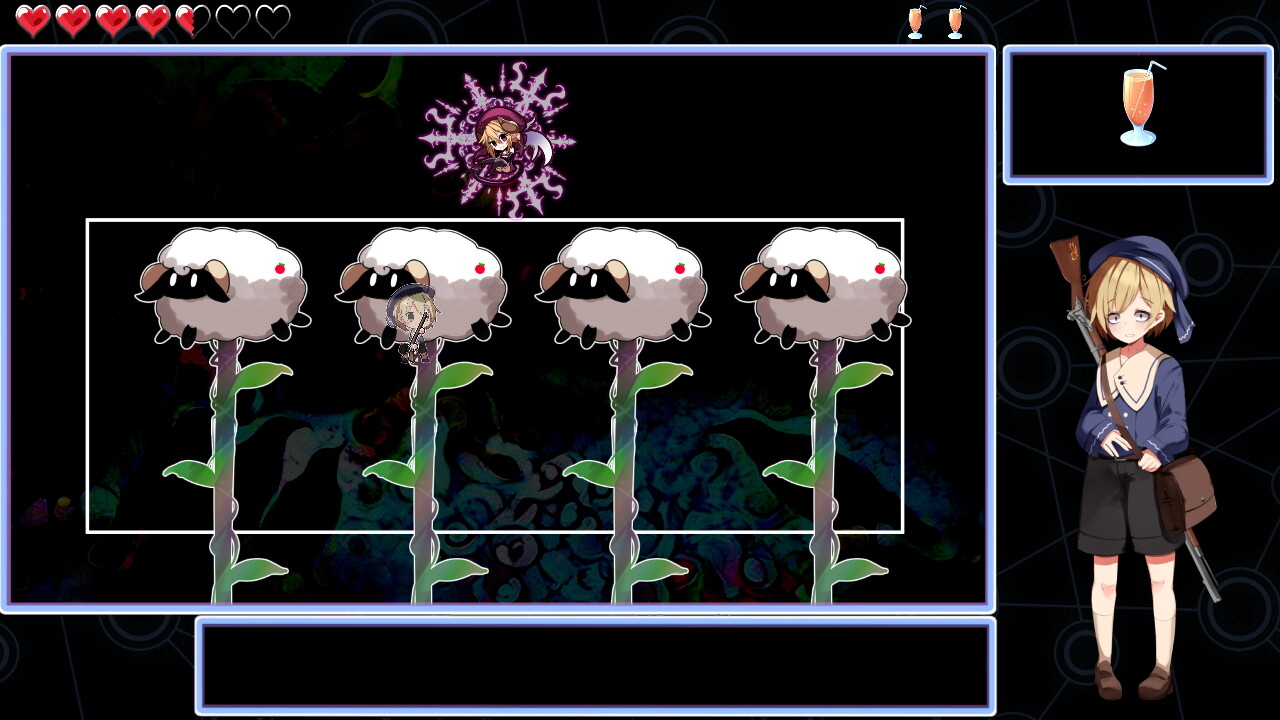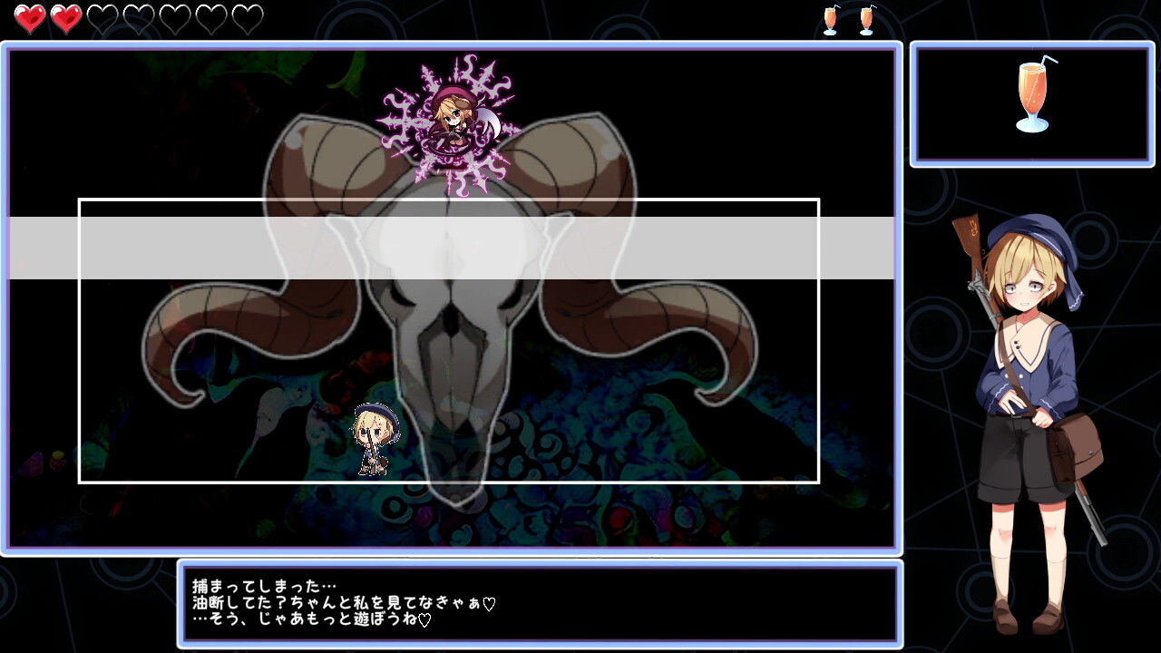 基本的にはアルには攻撃が通らず、ひたすら相手の弾幕を避ける戦闘になります。どんな攻撃をしてくるかはランダムのようです。