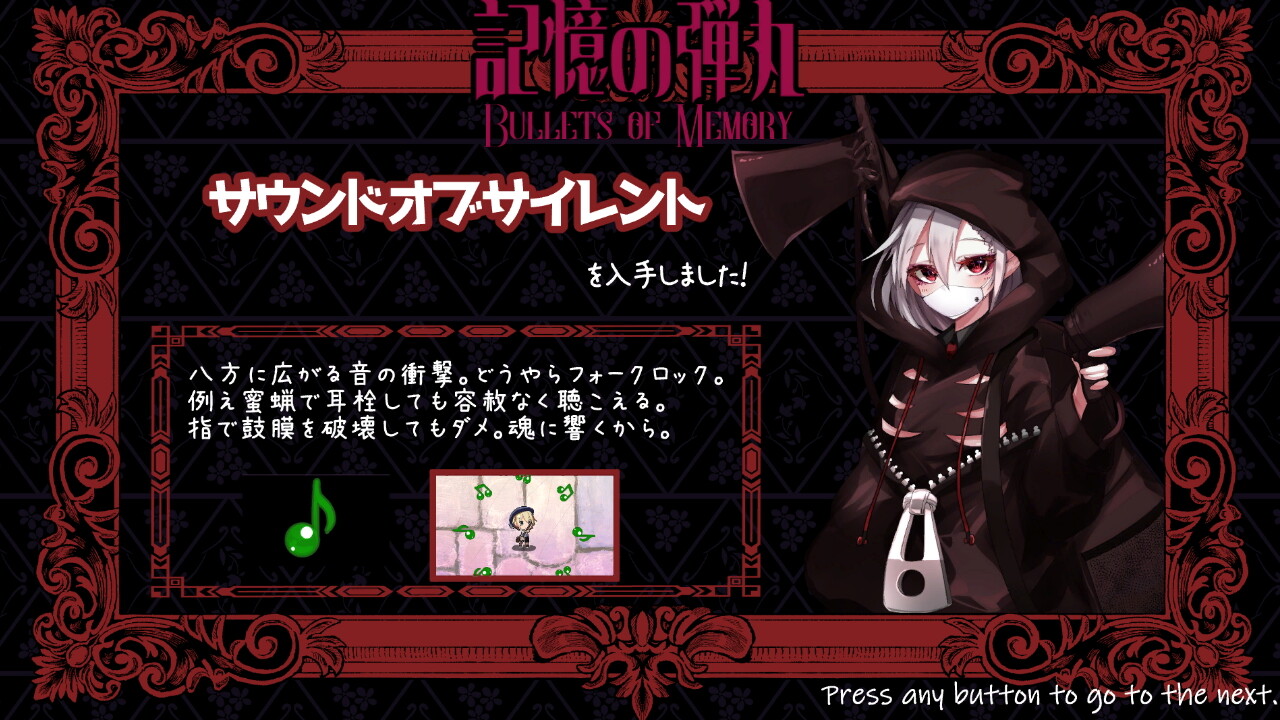 夢魔を倒したときに生かしておくと、ロック〇ンのように各ボスを象徴した記憶の弾丸を入手することができます。これが他のボスに特攻として有効打になることがあり、戦いが少し楽になるかと思います。