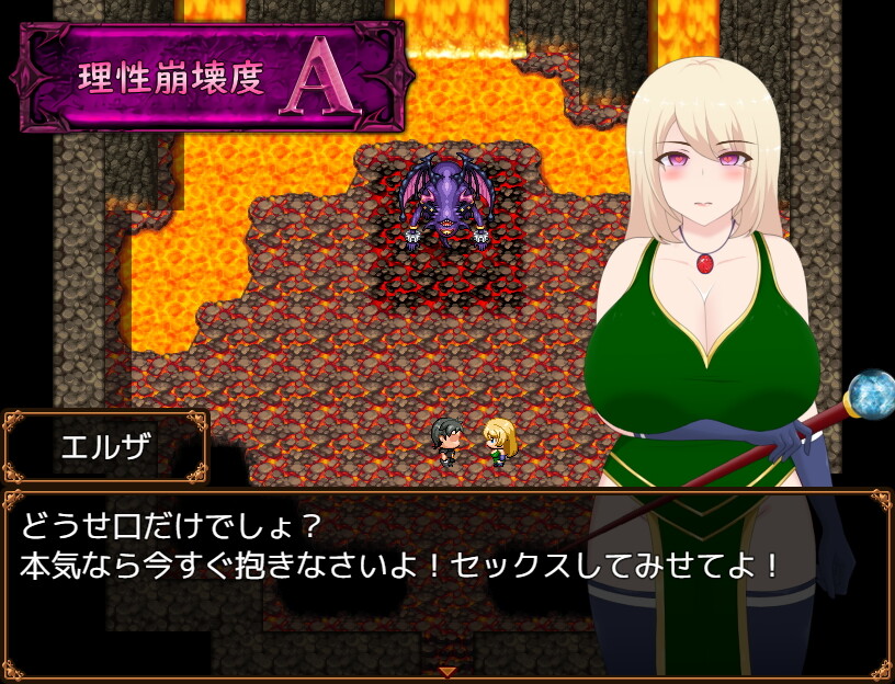という徐々にエルザが淫乱になっていき最後には村人たちの誰とでも寝るようになる過程を描いた寝取られRPGです。