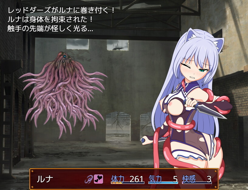 依頼を受けて淫欲の廃都を訪れたルナが身体ばかり狙ってくる敵の猛攻を潜り抜け深部を目指すRPG。