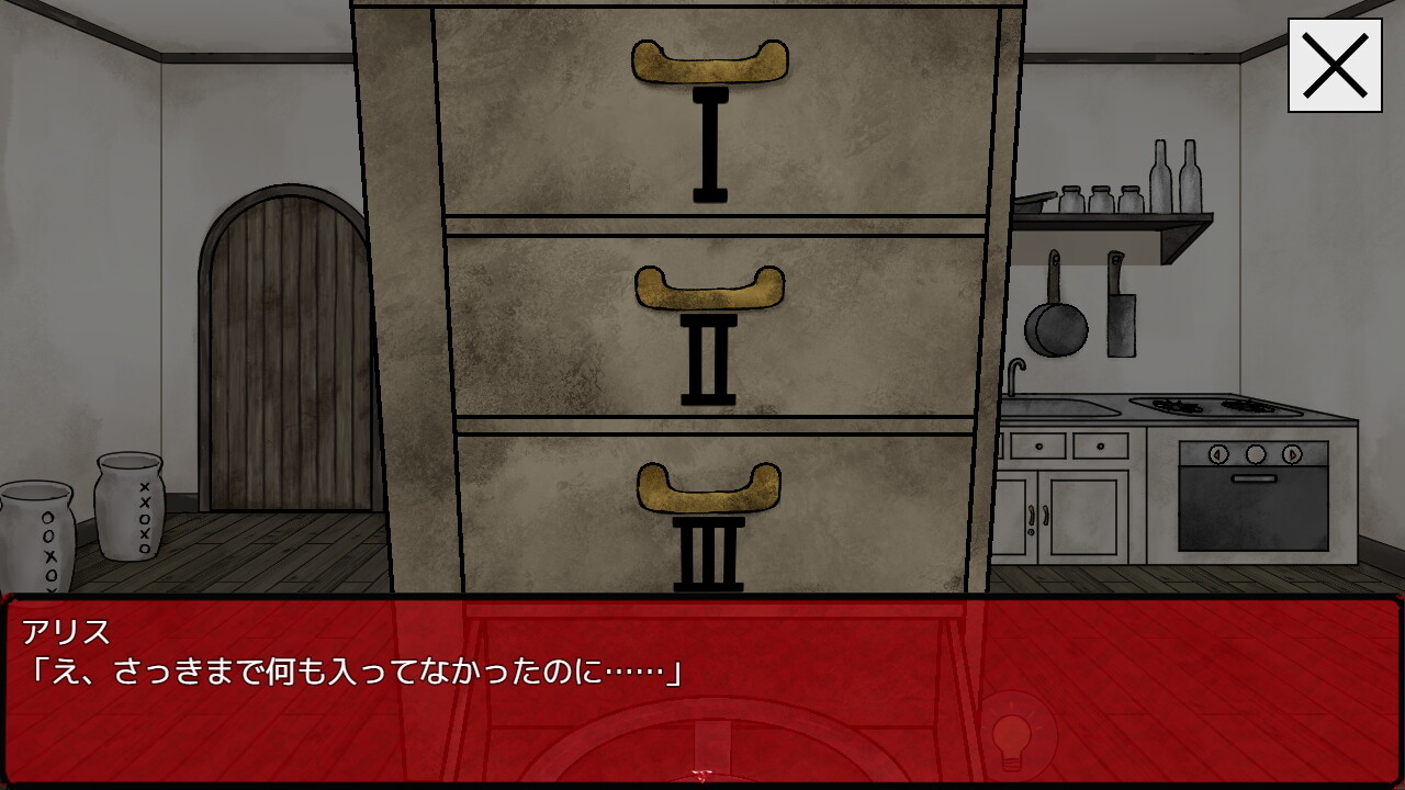 脱出ゲームは画面上の気になった部分をマウスでクリックすることで、色々なギミックが動いたり謎を解くために必要なヒントが提示されていく進行形式です。こういったゲームは制作者によって極悪な難易度だったりしたのですが、夢獄の国のアリスはそういった点でいえばとても易しく、アリスやアリスの姉であるアーニャと屋敷に関する謎を追っていくストーリー要素に重点が置かれていると思います。