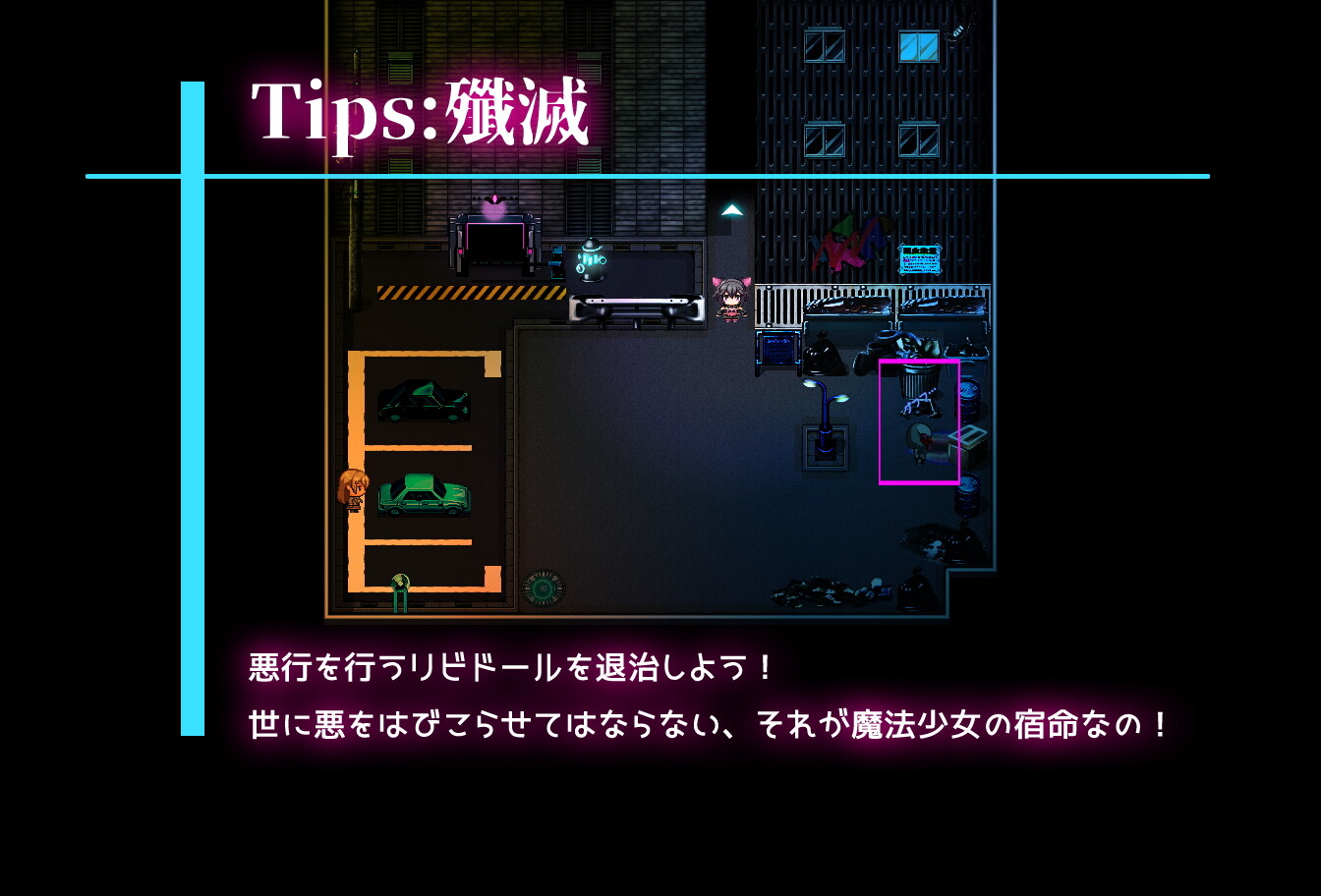 自らの願いを叶えるため、そして秘密結社サーカスの脅威から街と人々を守る為に詠美愿ノア(ながみはら のあ)が魔法少女”ガール”になって戦うRPG。