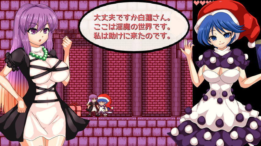東方Project第12弾東方星蓮船に登場したキャラクター、聖白蓮(ひじり びゃくれん)を主人公として操作し、自分の姿に酷似した淫魔を追いながら魔城からの脱出を目指す二次創作アクションゲーム。