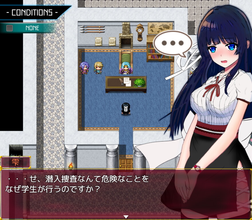 「状態異常 =Abnormal Condition=」は、キケンな潜入調査を単身でこなすヒロインが、その無垢な肉体を汚そうとする数々の罠をくぐり抜けて失踪事件を解明していくRPGです。