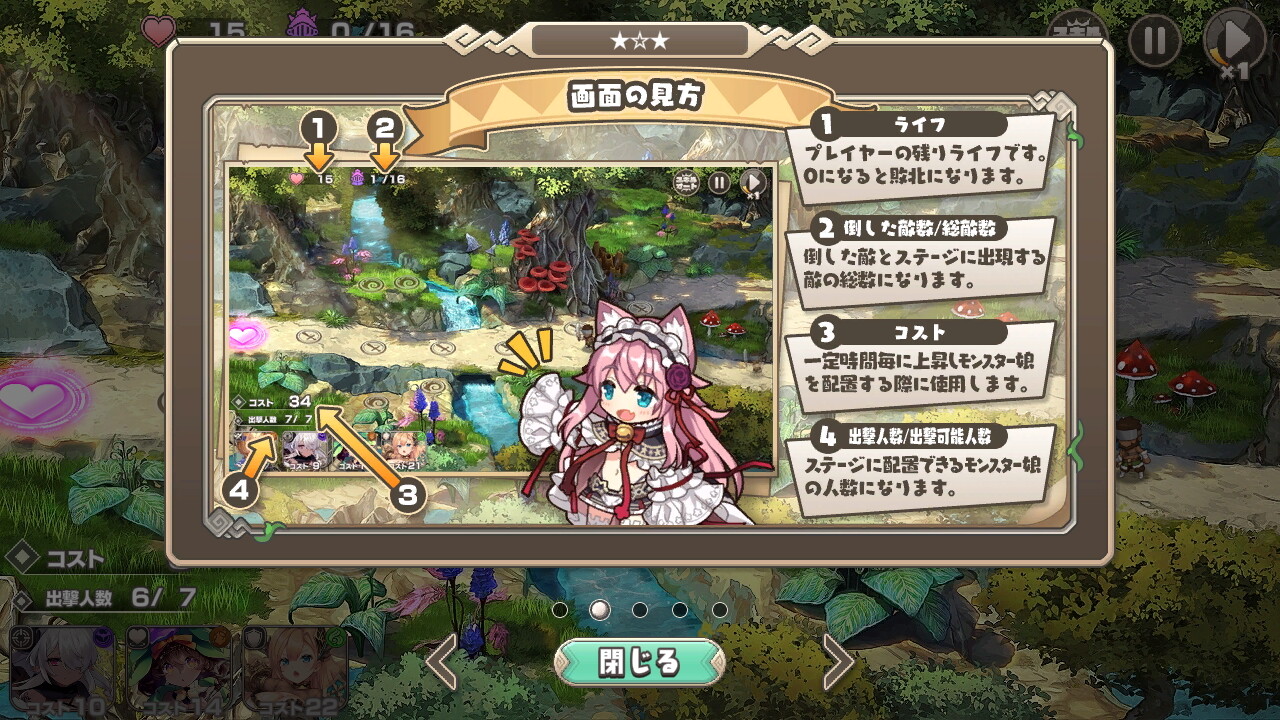 押し寄せる敵キャラの侵攻をモンスター娘たちの特徴を活かすように配置して撃退していくタワーディフェンスゲーム。