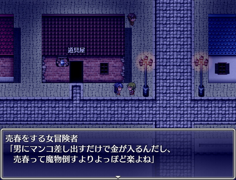 しかしあまり戦闘で経験値を稼がなくても一番強い装備を揃えていけばなんとか太刀打ちできるバランスになっているので娼婦・処女プレイどちらでもお金を稼いでいくことが大事です。