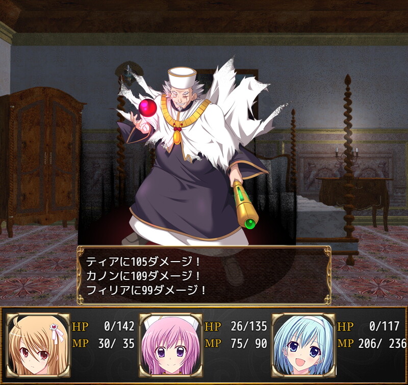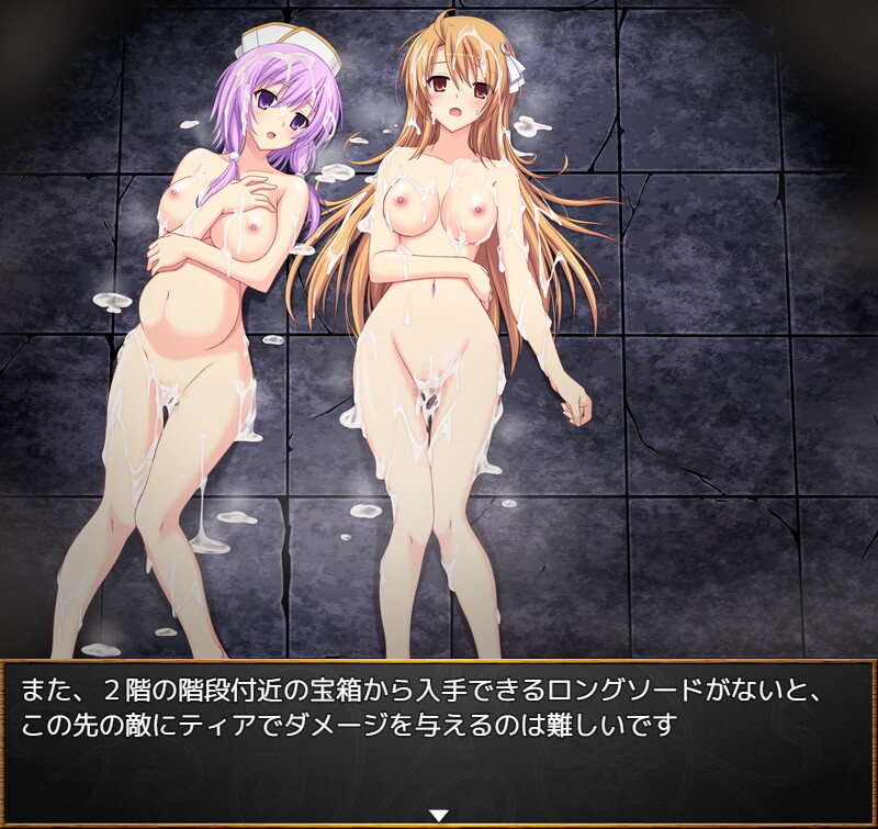 負けてレイプされると直前の戦闘からコンティニューすることができ、HPとMPが回復します。宝箱内の回復アイテムと魔法以外に回復する手段が無く時には負けること前提で戦闘を挑むのも戦略の1つでしょう。