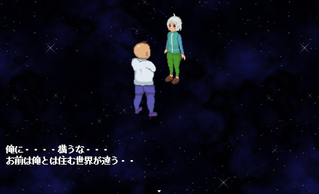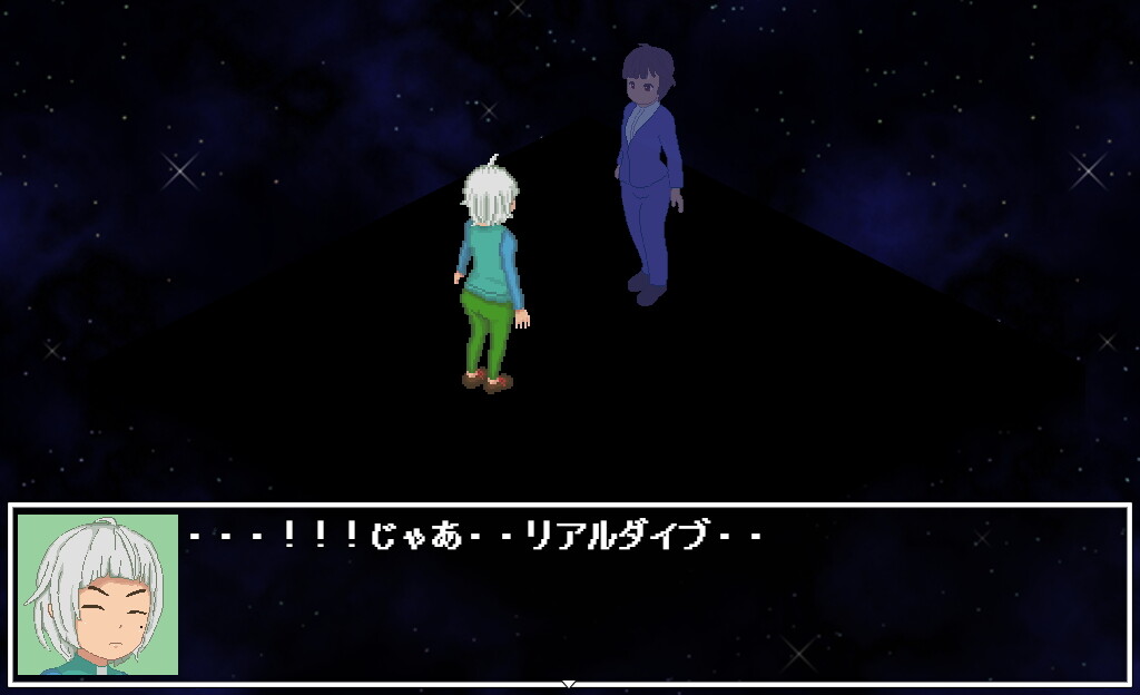 本作「リアルダイブワールド」は純愛にも寝取られにも分岐しうる2面性のあるストーリー展開が特徴のレトロゲーム風ドットRPGです。