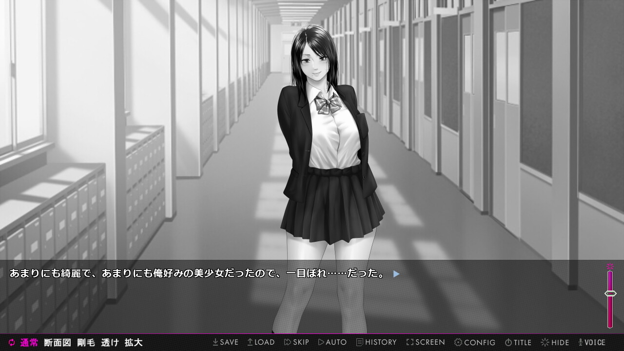 およそ一般的なノベルゲームの遊び方には対応できる設定回りやエロシーンの調整機能もありとても遊びやすい。