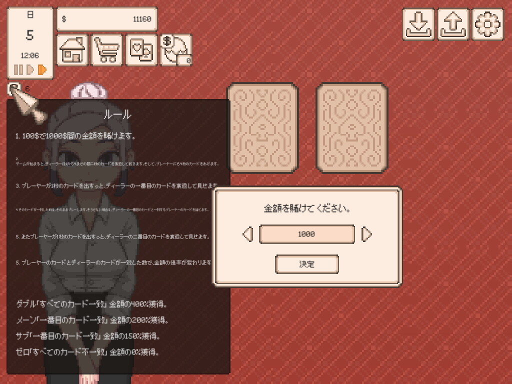 その抜け道がカジノ。ポーカーのようなトランプの絵札合わせに勝ちお金を稼ぐのが攻略上かなり有効でした。