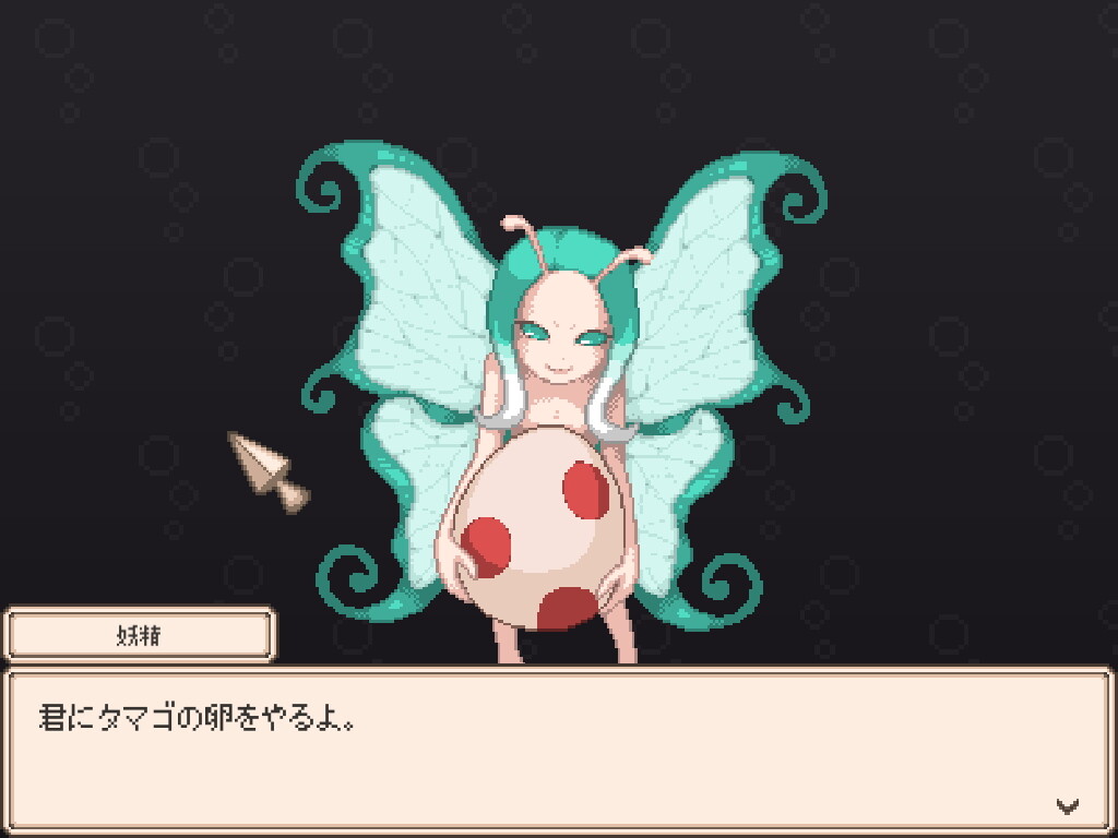 ゲームを開始するとこれまた謎の妖精から1つタマゴをプレゼントされます。