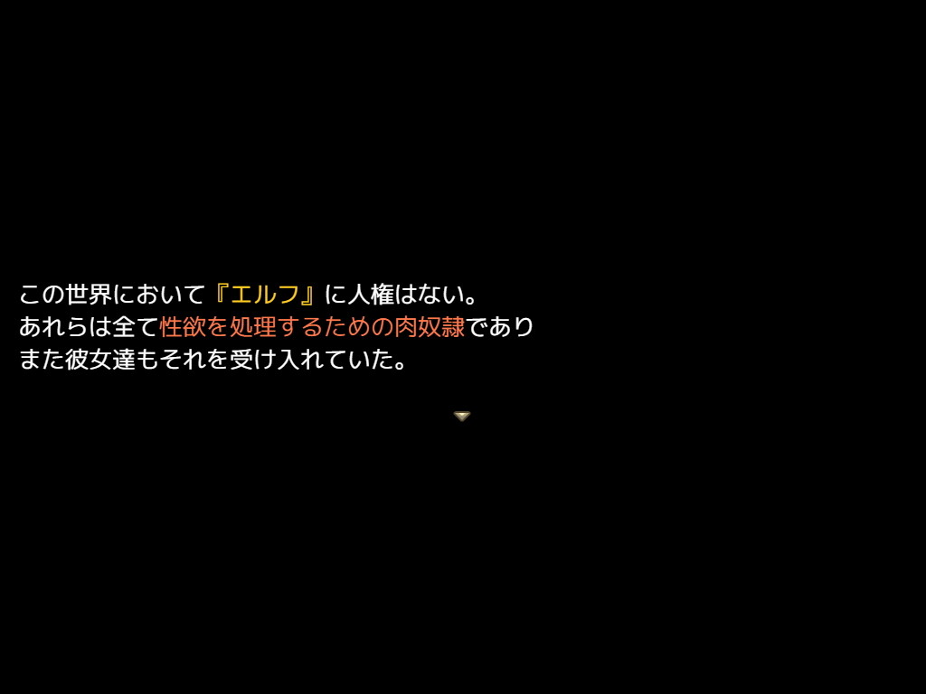 通常ルートでは人間の奴隷だったエルフが、エルフルートでは戦役の勝者として人間を支配しています。