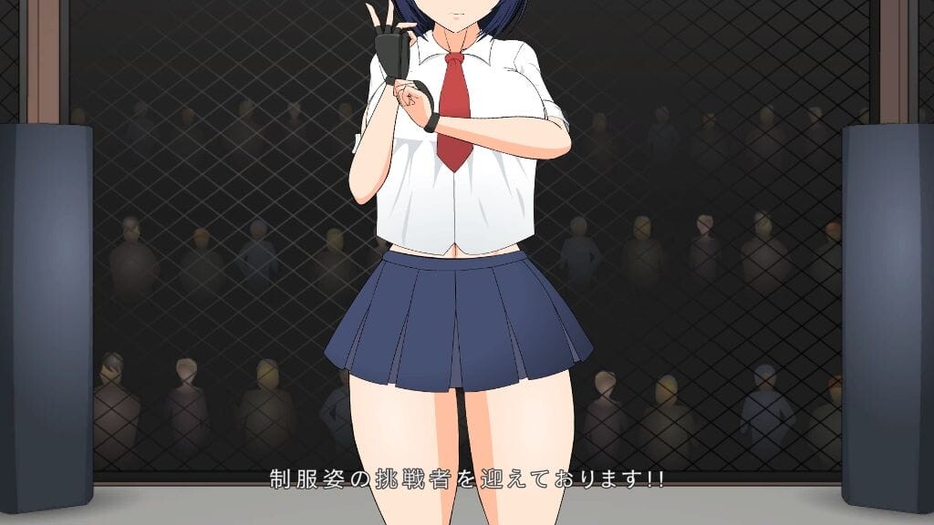 この地下闘技場のバーリトゥードルールは試合中のエロ攻撃も余裕でオッケー。そういった目的で集った観客を喜ばせる制服の格好を強制された美音は敗北した時のリスクを背負いながら戦いに臨みます。