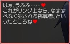試合中に「挑発」することで頭に血が上った美音はチャンピオンであるプレイヤーを性的に攻撃することで辱めようとします。足コキやフェラチオ、そして騎乗位など先述した実況も相まって屈辱的でエッチなシーンも用意されています。