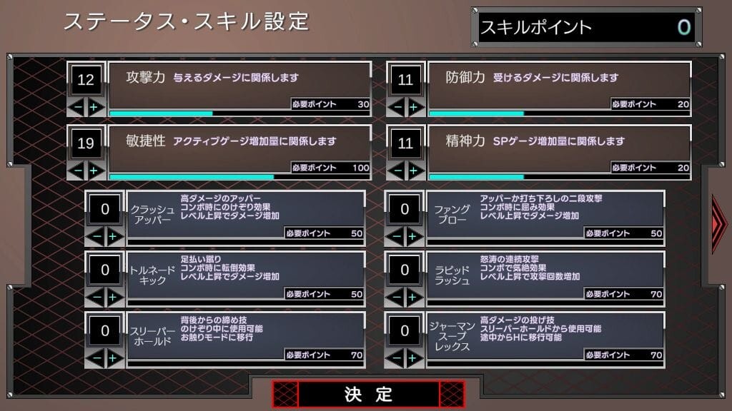 スキルポイント振りは私は敏捷から上げていきましたね。勝つためにはゲージの貯まる速さが大事です。