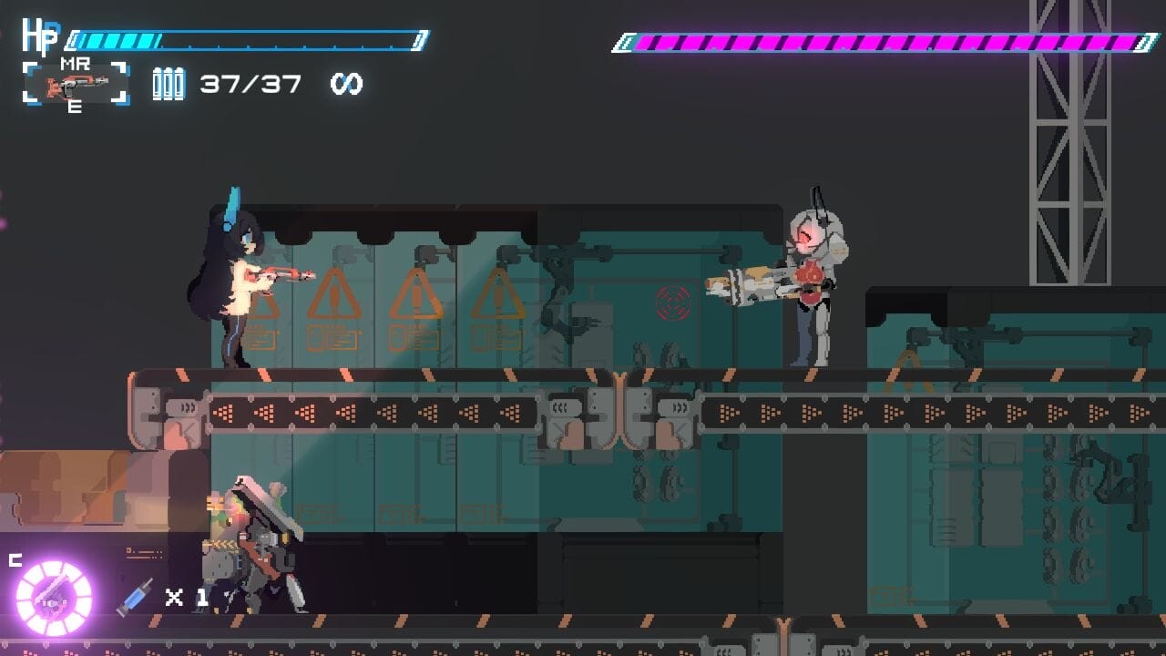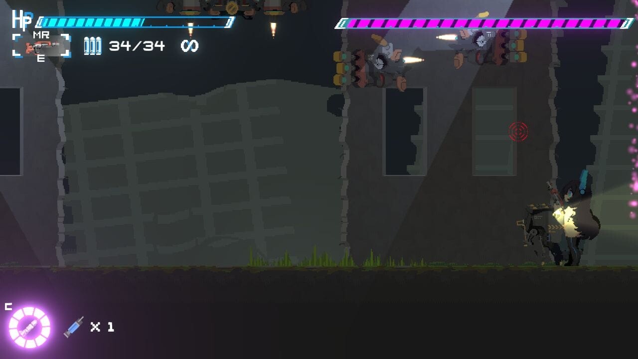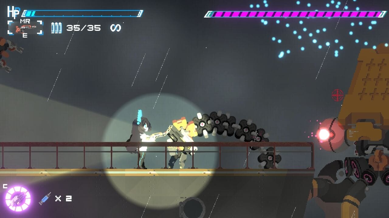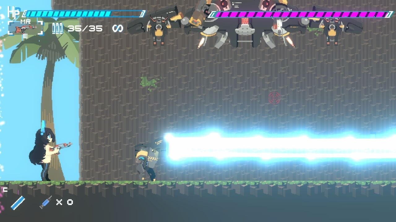 ステージ2では屋外に出て緑が見えたり大破して放置されたと思しき列車車両があったり、荒廃した世界で人類と機械が戦っている様子がうかがえます。後半のステージでは強力な武器が登場するようですし、ステージ遠景で描かれる地球の状態を含めて冒険心をくすぐるゲーム性です。