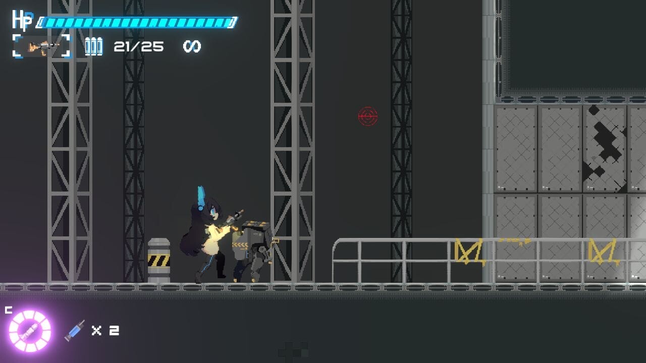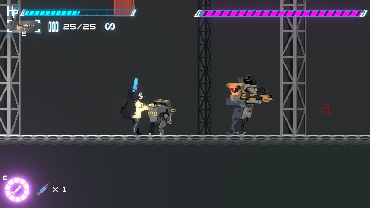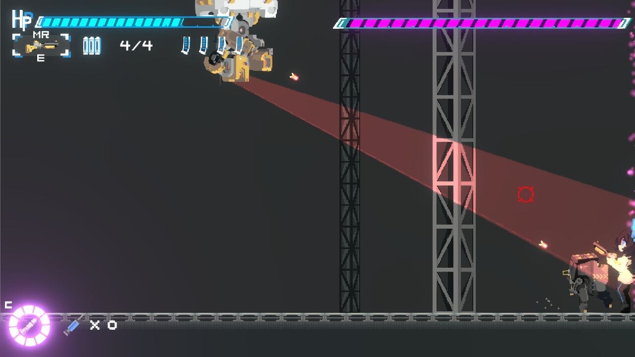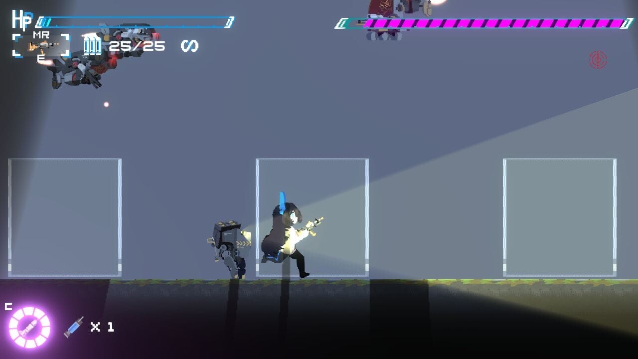本作はマウスとキーボードで操作するアクションゲームです。マウスで赤い照準を操作して攻撃。WASDキーなどの標準的な操作方法で葵を動かして機械生命体をなぎ倒して進みます。