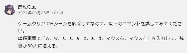 製作者様のCi-enでご本人より隠しコマンドの情報が公開されました。