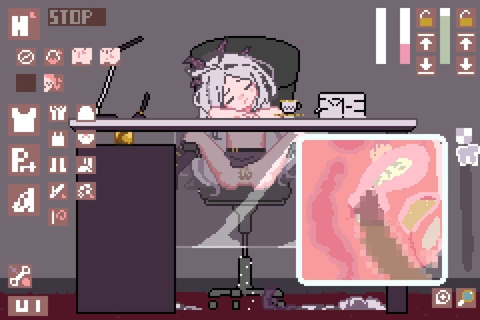 サンプル画像等でもお分かりのように本作はドットアニメーションで描かれている作品で、UIに表示されているコマンドをクリックすることで服を脱がせたり、エッチをしていきます。