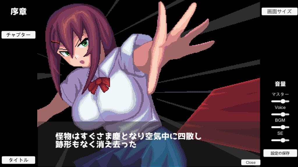 ちょっと分かりづらいですがテキストボックスをクリックすると次のテキストが読み込まれるようになっています。そしてなんとフルボイス。非常に容量の軽い作品なのですがボイス音声があることに驚きです。