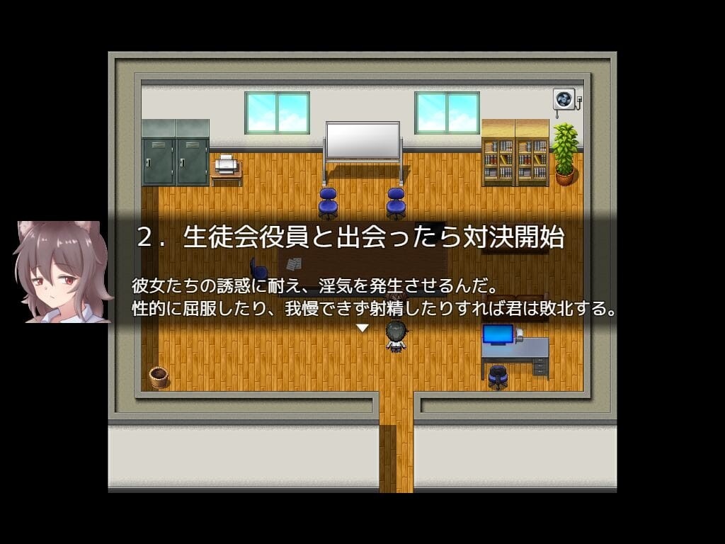 淫魔に負けても生徒会室にリスポーンするだけでゲームオーバーにはなりませんし、回復アイテムの欠片も貰えるので最後にはちゃんと勝てるようになっています。