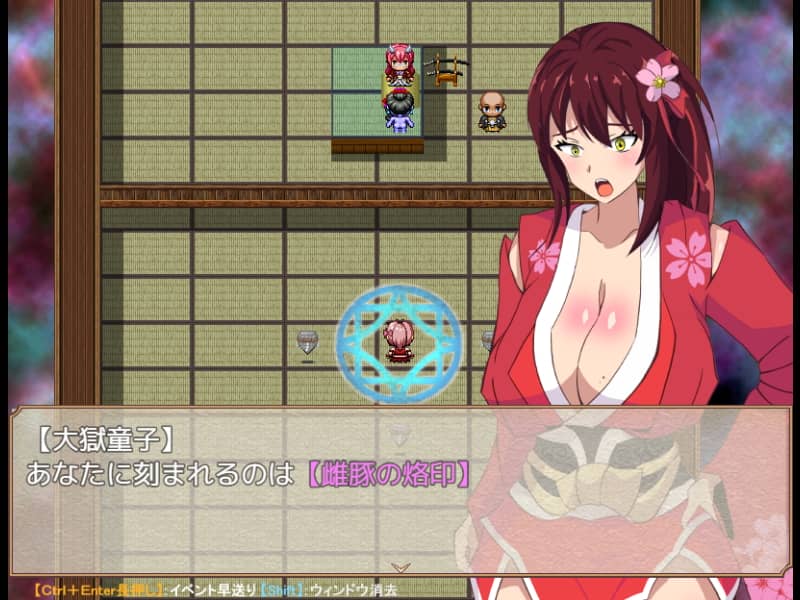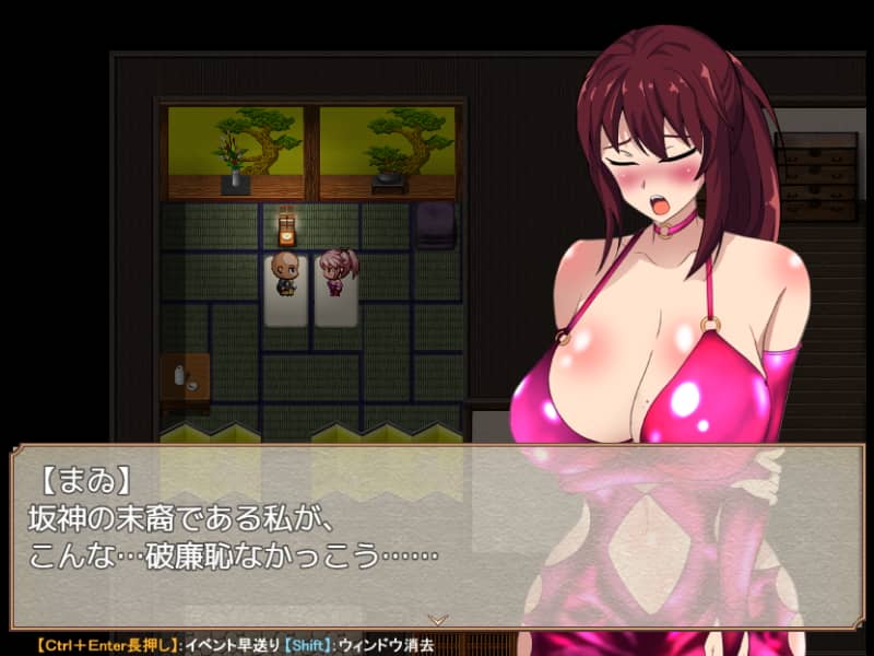 RPGでありシンボル接触で敵をなぎ倒していく簡単な戦闘とエロを縛っているとかなり苦戦するボス戦が用意されており、エンディングは3種類。まゐのエロ状況によって結末が分かれます。