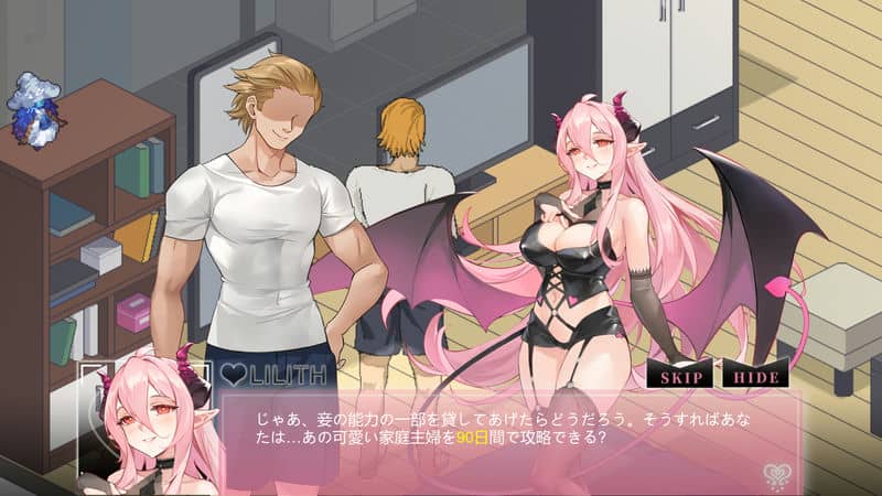 最初は家に呼んで家事をさせることしかできませんが、リリスのサポートや怪しげな通販アイテムによってやれることが増えていき、次第にエロいことも解禁されていきます。