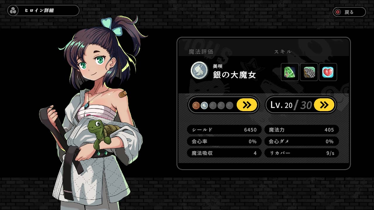 20種以上あるステージはかなりマップも広く探索し甲斐があります。魔法少女の成長アイテムを落す強力な敵ユニットの場所も記録されるようになっていました。