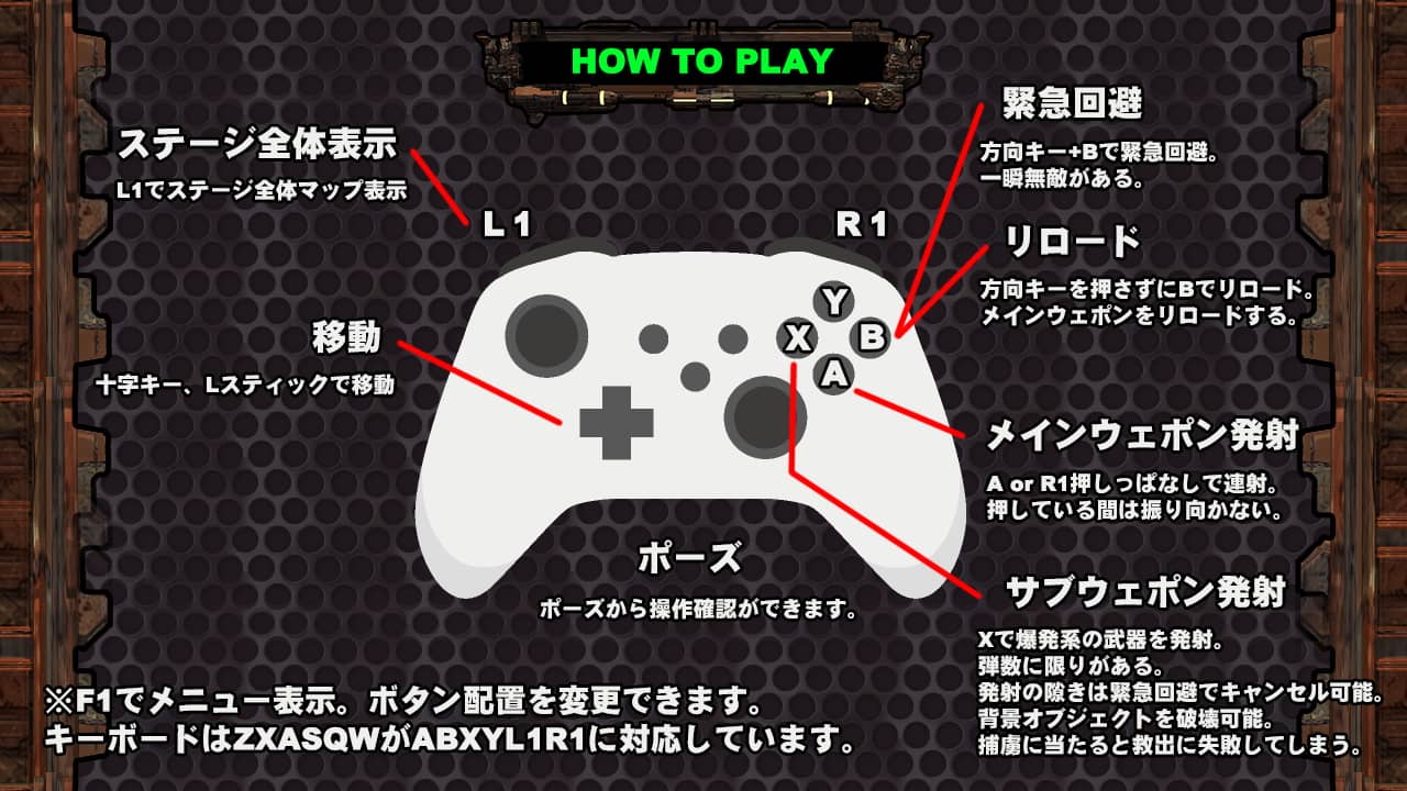 本作はアクションゲームツクール製の横スクロールシューティングアクションです。90種類にも及ぶ性能が異なる武器が登場し、全30ステージを攻略していくやりごたえ抜群の作品です。