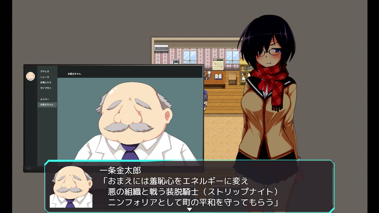 土壇場でフミカに力を授けたのは研究者の祖父であり、露出の才能を戦う力に変換する装脱騎士ニンフォリアとしてこの街を脅かすマスタロンと戦っていくことになる。