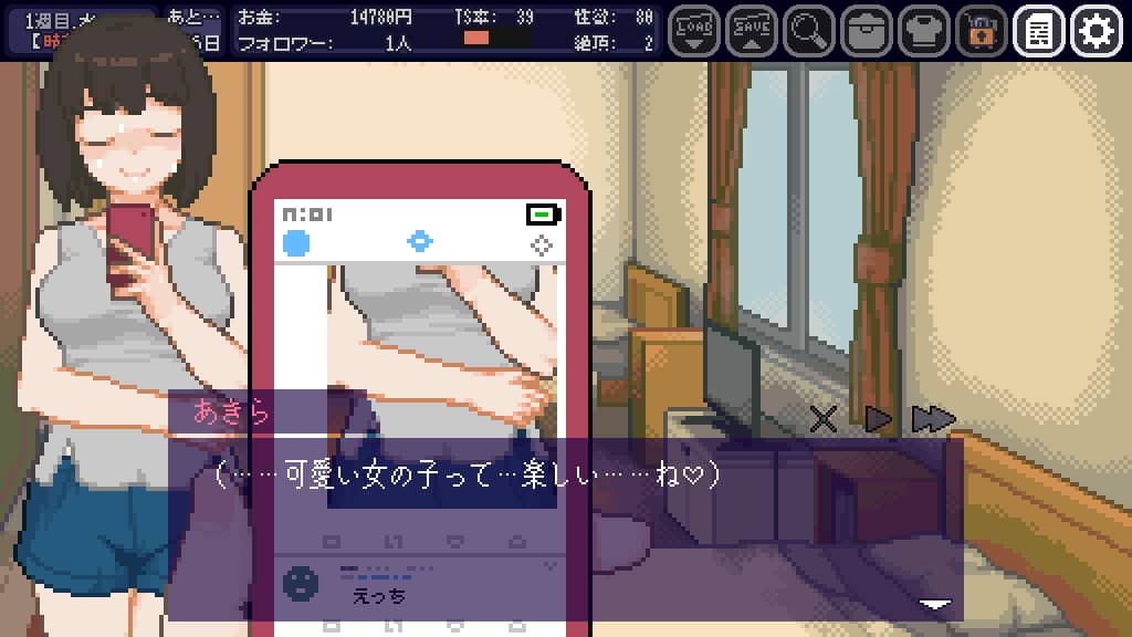 あきらの裏垢での活動が本作におけるお金の収入源のメインとなっていて、これはあきらの着せ替えを通販で買うという使い道があります。