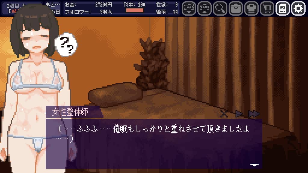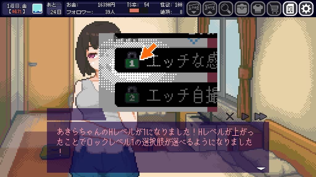 - 各行動はエッチレベルによってロックがかかっているものが存在していて新たに選択肢が増えていきます。