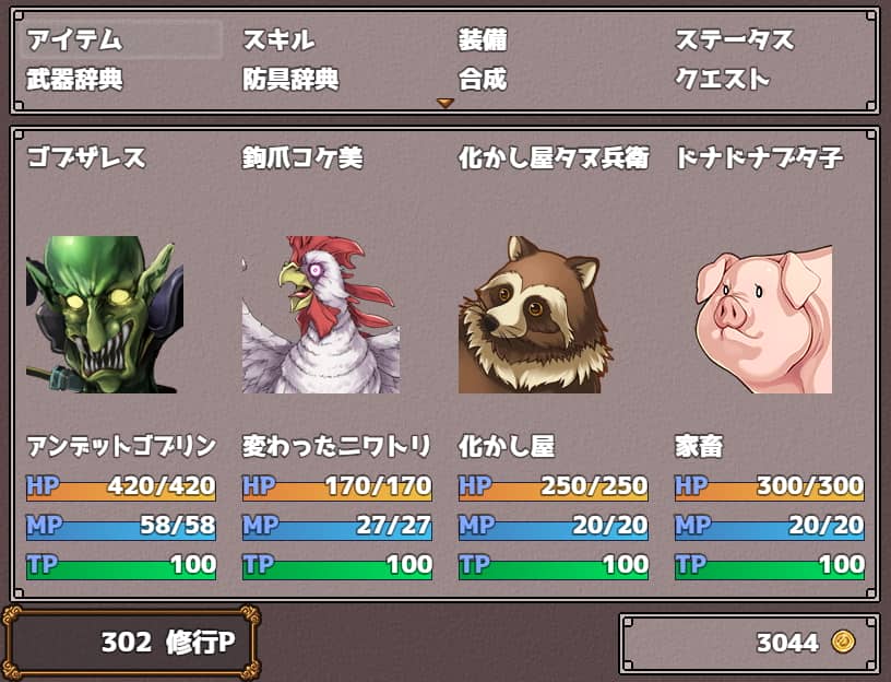 私は果樹園のステータス上昇アイテムは全てゴブザレスに使用する不沈艦作戦でクリアまで突き進みました。満遍なく育てるという作戦も大いにアリだと思います。本作はボスは強くありませんが道中の雑魚敵が強かったです。
