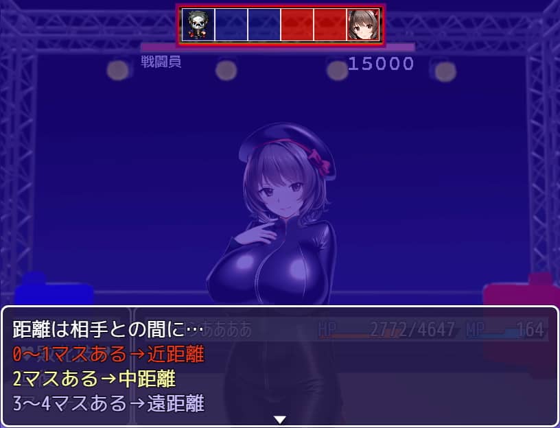 - ザコ戦闘員とのバトルは毎ターンコマンドを選び結果決定される相手との距離によって使用できる技が変化し、また相手が仕掛けてくるエロ攻撃も変化します。