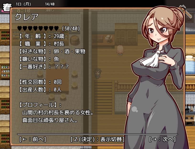 このゲームはエッチの対象になるのは村にいる16人の10代から30代のヒロインです。ゲーム開始からしばらくはエッチができません。嫌々子作りを強いることはできないという主人公の理性的で優しい判断のためです。