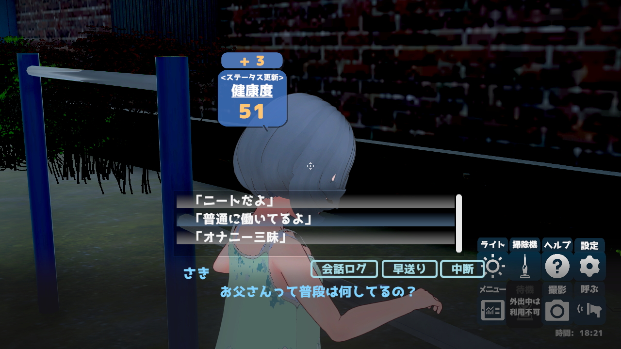 このゲームは開始時点で「義理の父親」であるか「実の父」であるかを選択できロールプレイができるのですが私は実の父という設定で進めていきます。
