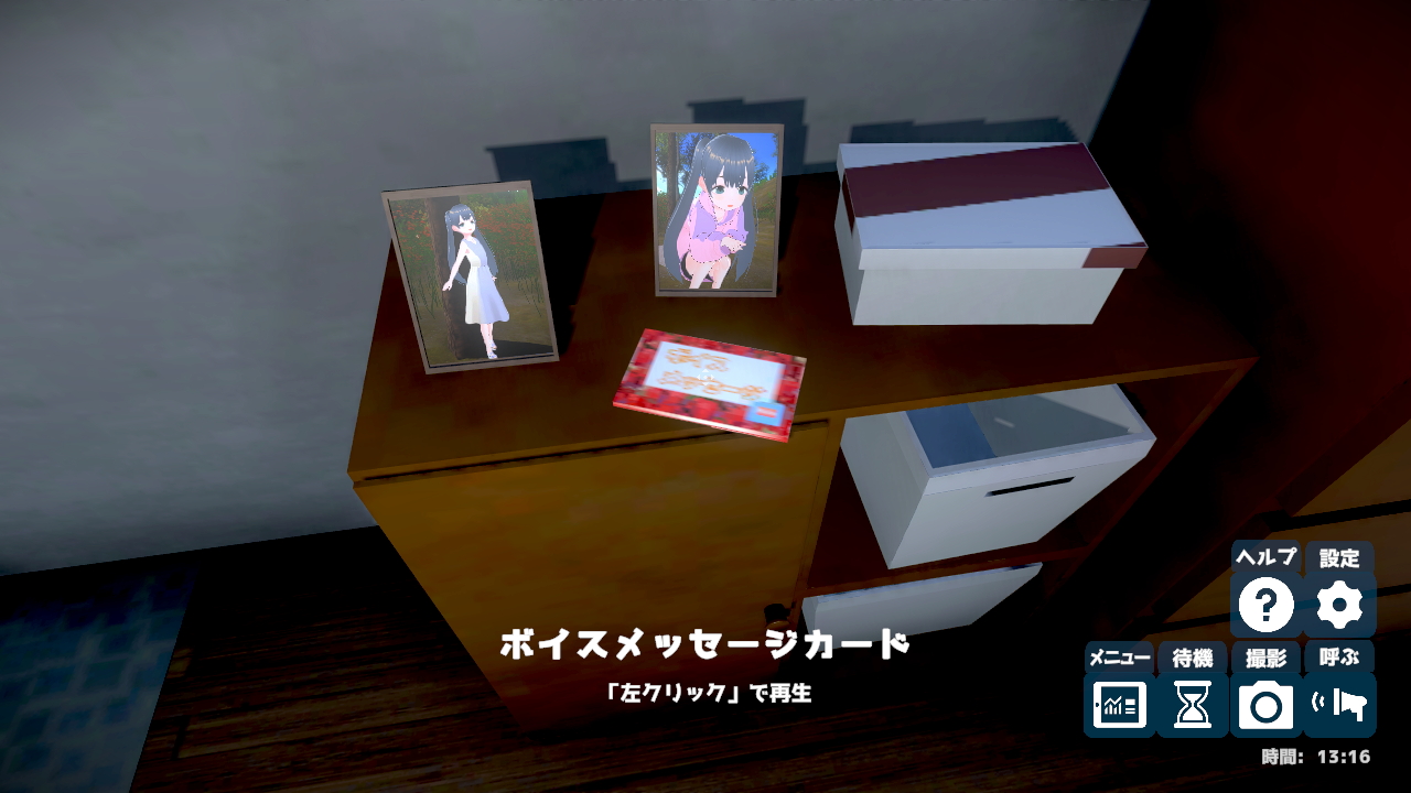 ・アイテム削除機能を追加しました。アイテムに中央カーソルを合わせ「H」キーを押下するとアイテムを消すことが出来ます。プリントした壁掛け写真も削除可能です。(ただし盗撮カメラは削除できません)