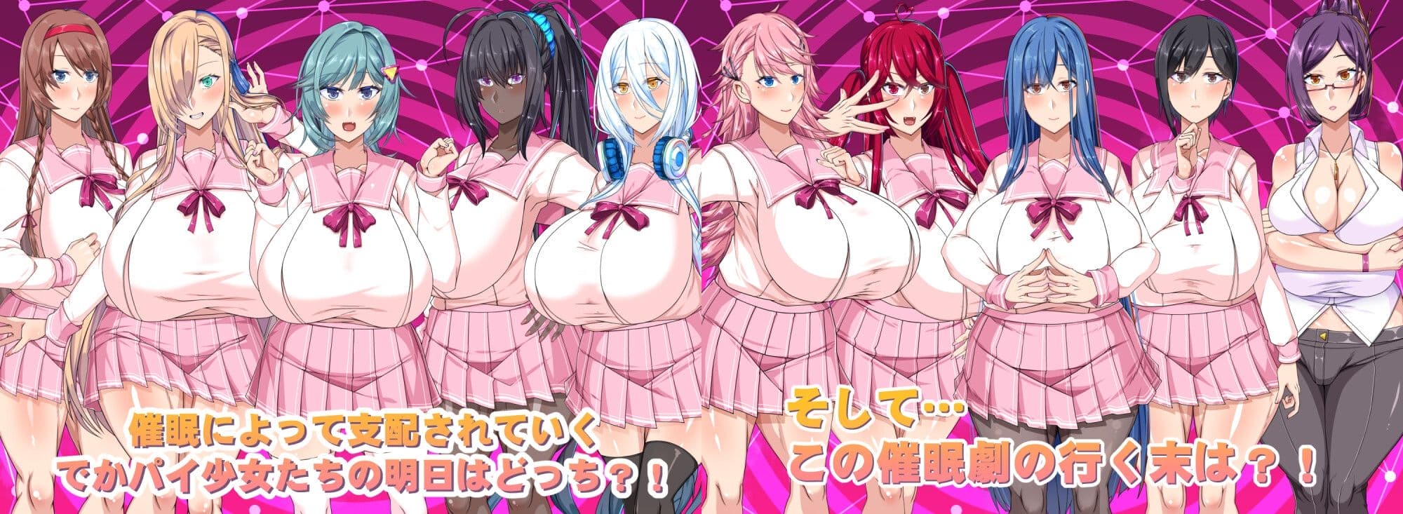 同人らしくよりドスケベなノリで楽しめる(恐らく)有名商業抜きゲーのパロディ作品。催眠の力を手に入れたキモ教師となって学園の王として君臨する物語になっています。