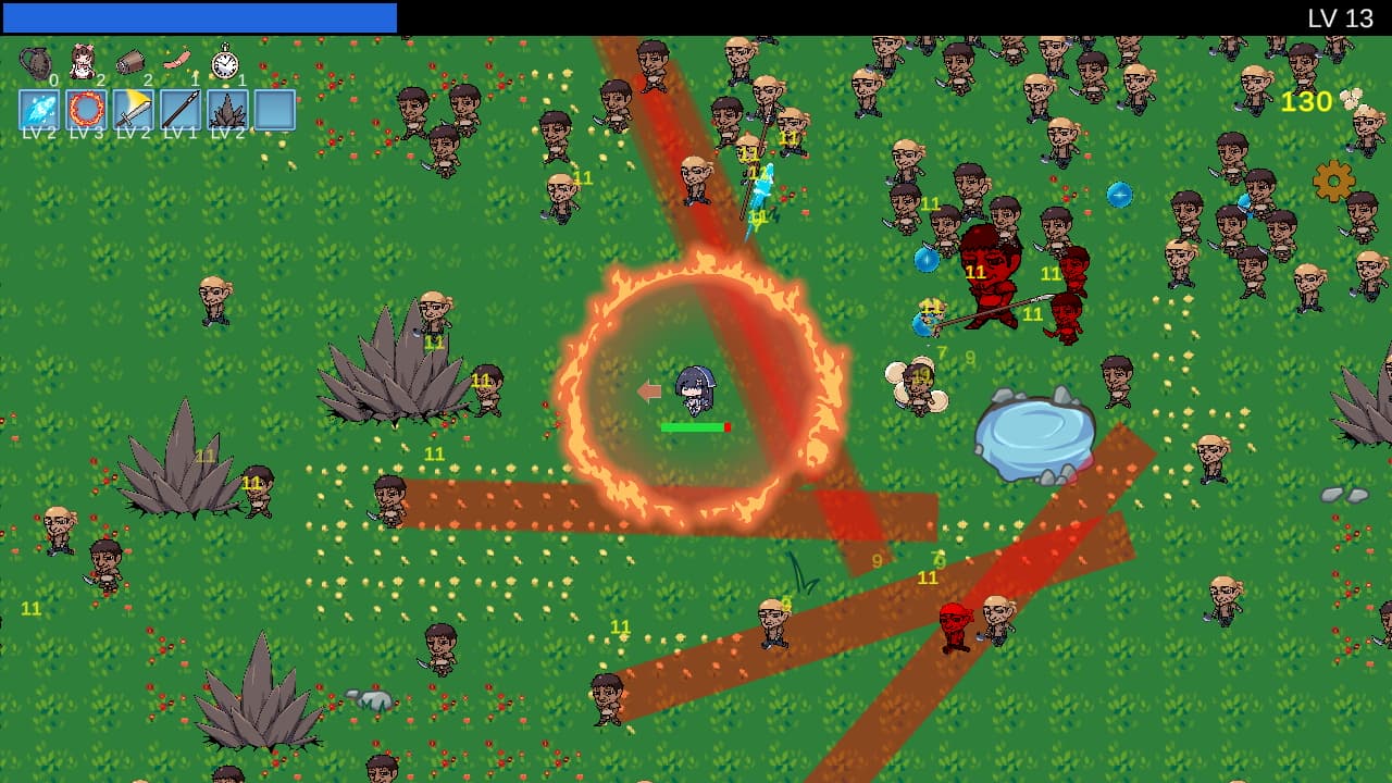 割とヴァンサバクローンとして原典に忠実に作られていましたが、オリジナル要素として「敵が攻撃してくる」というものがあり、特に射撃してくる雑魚敵やエリート、ボスとの戦いは苛烈極まりなくかなり難易度が高いです。