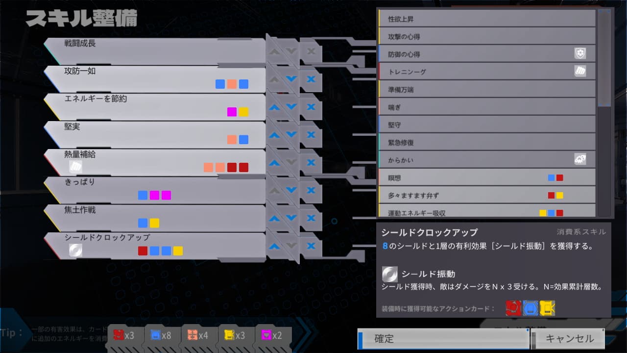 - 特に有用と感じたのが防御しているだけで敵にダメージが入る「シールドクロックアップ」