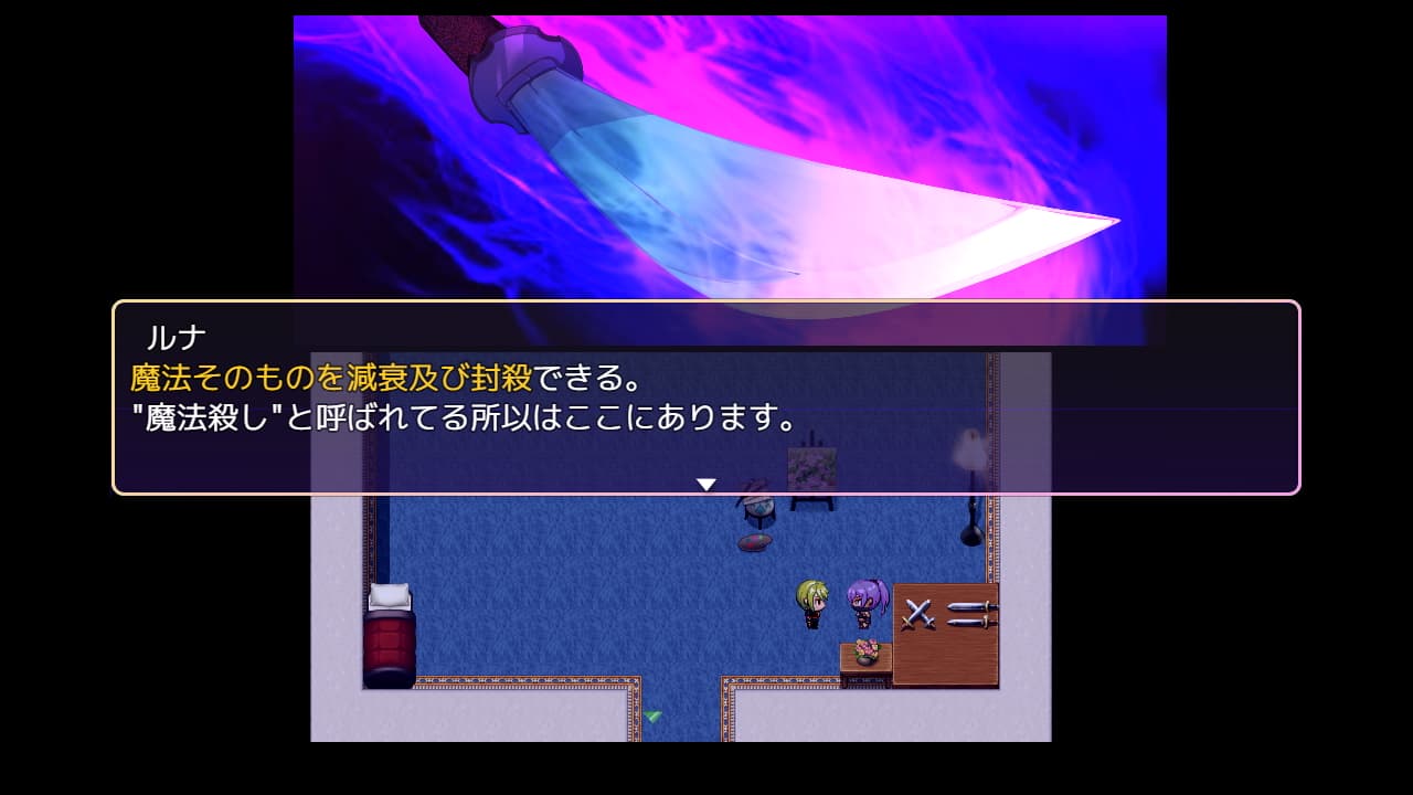 ゲームのタイトルにもなっている小刀ミラージュ。いわゆるメイジマッシャーみたいです。