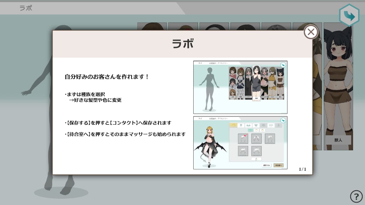 ランダムで来店した女の子を保存したり、キャラクリ機能もあるので見た目好きな子を呼び出すことができます。