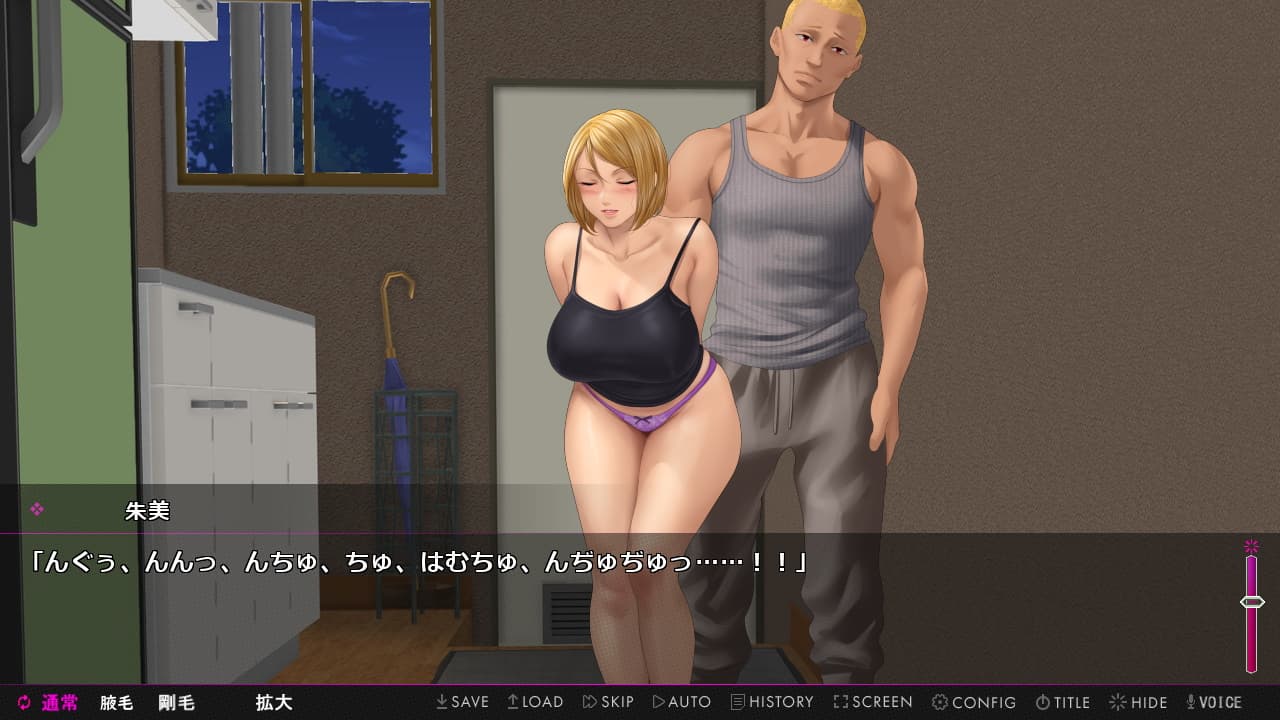 詩乃は目隠しプレイのような特殊系、朱美は水着とブルマのコスプレセックスが差別点です。特に朱美のブルマ姿は立ち絵すら激エロです。意外と服装の差分があって鄙びたアパートで暮らす人妻の生活感が出ていて面白かった。