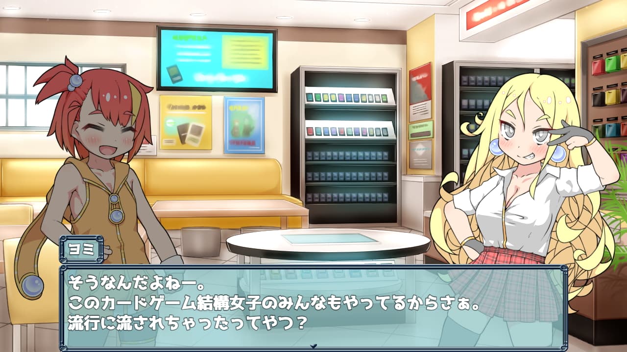 本作は作中では対人のカードバトルですけどPVE形式で敵のデッキに合わせて編成を組み替えて有利にバトルを進めていくカード対戦ゲームです。それぞれ4枚まで決められたコストの範囲に入るようカードを選んでデッキとします。最初はちょっとしたカードの効果くらいで相手のカードを打ち負かしていく割ととっつきやすい仕様なのですが、物語の進行によって続々と新しいカードパックが追加されていき新規要素に触れながらその力を活かしつつ戦っていくことになります。これのお陰で最後までダレずに遊べましたね。