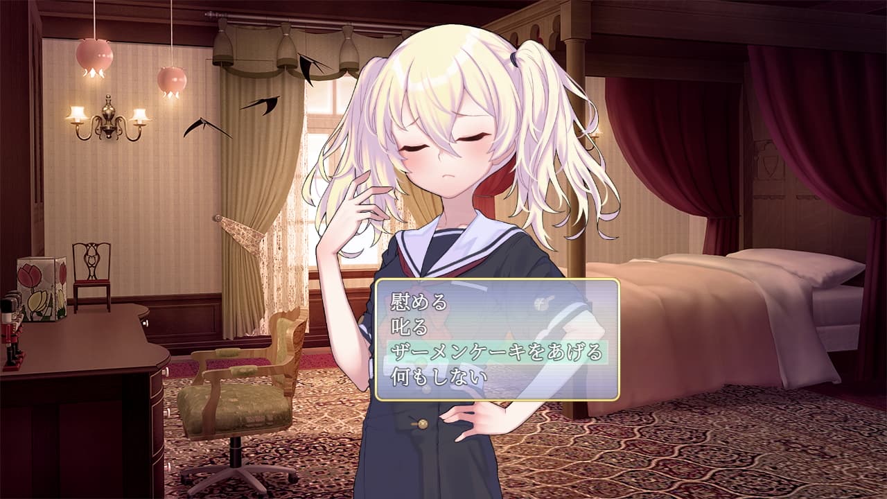 本作の点数が低めな理由はひとえにゲーム攻略の難易度が高いという点。30日間執事としてエリカのもとで働くシミュレーションゲームとなっていますが、コマンドによるステータス上昇値が非常に低く、エリカとのじゃんけんに勝って臨時収入を得ながらドーピングアイテムを買って進行条件を満たさないと大抵の場合バッドエンドになってしまいます。