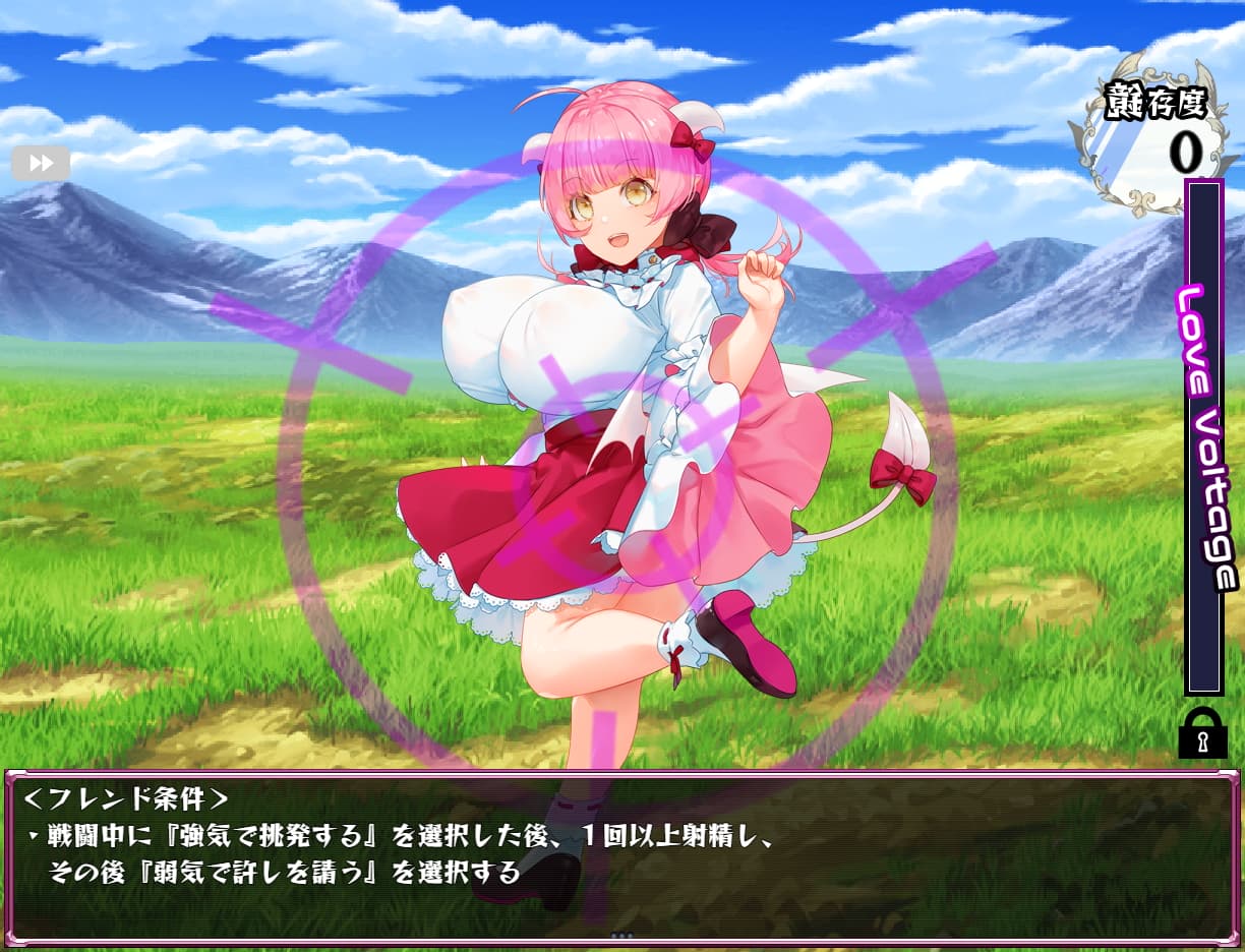 | みるくちゃん。と友達 | 特定の淫魔と友達になろう。 | コルディア村聖堂の戦いに勝利するか停戦した後、聖堂でみるくちゃん。と会話する |