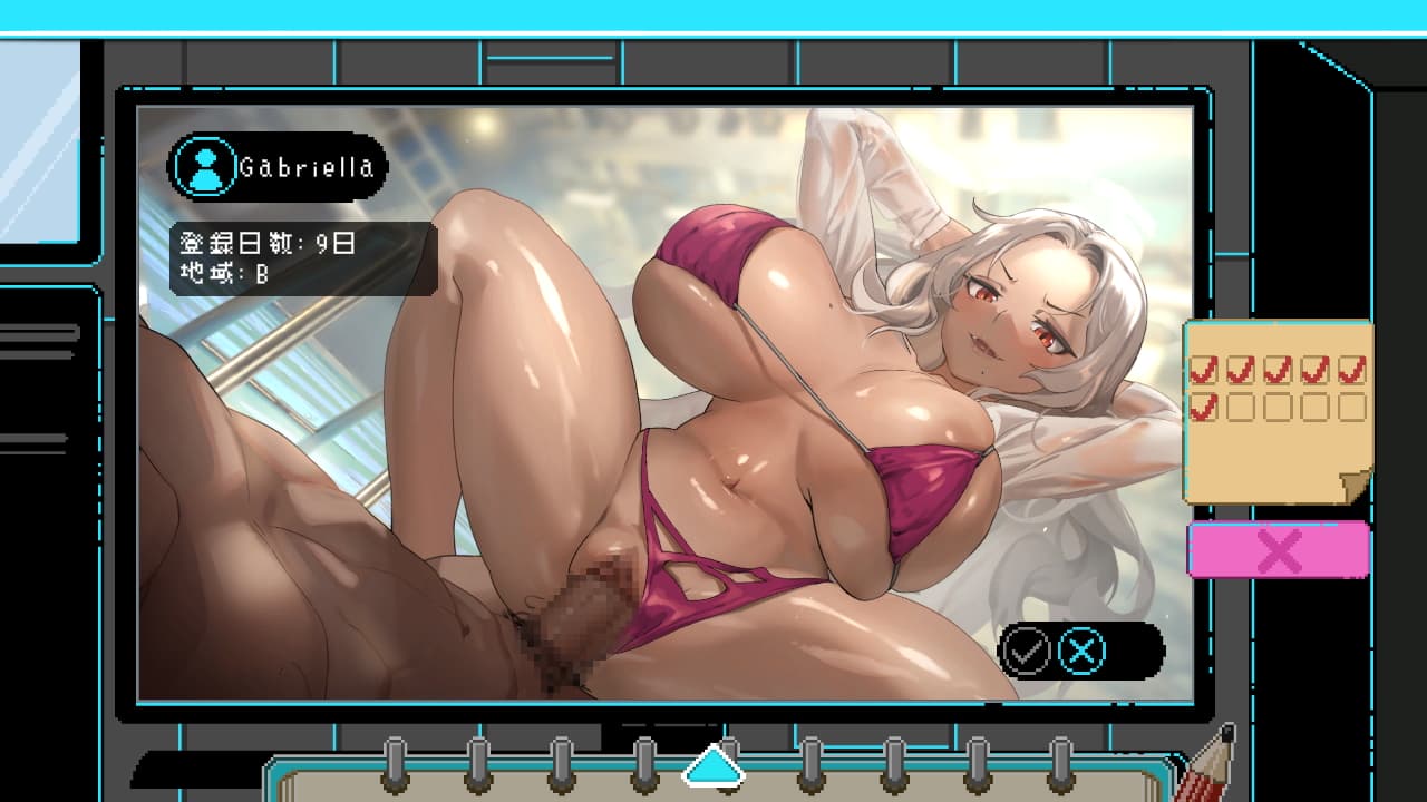 今作のゲームの流れやエッチシーンの形態の考え方は概ね前作から継承されているものです。エロ画像を検閲する仕事自体がミニゲームですがこの他にも聖歌を歌う音ゲーみたいなものがあったりヒロインを堕とす際にタイミングよくキーを押す形式のパートがあったり、ストレスを感じない程度に障害が用意されている感じです。家賃という形でノルマが取り立てられるのでヒロインのケツばかり追いかけるのではなく、仕事もしっかりとこなしていってください。