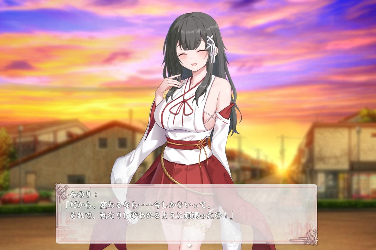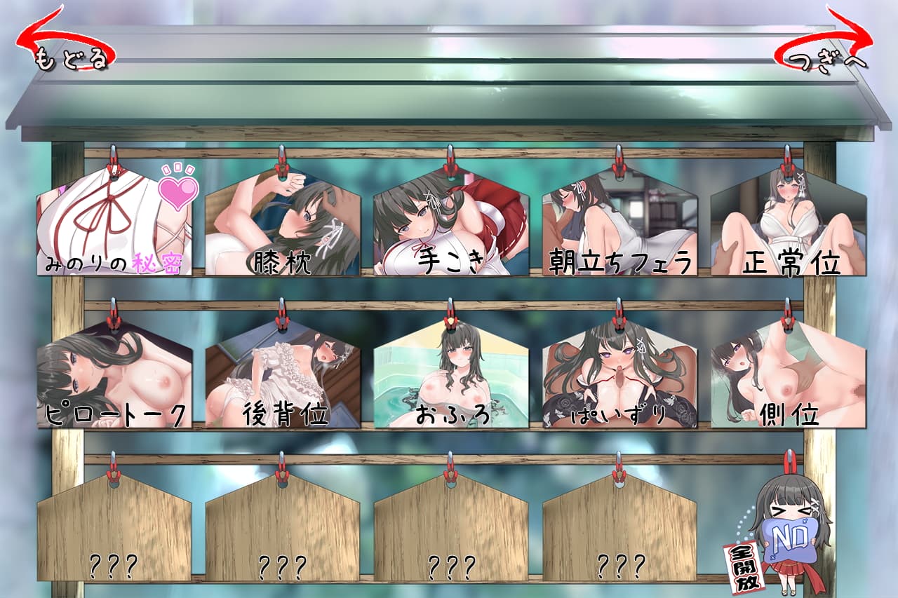 エッチに無知なのに凶悪な身体を持っているヒロインと神社を復興させていくストーリーの中で2人の関係も特別なものとなっていくというコンセプト。同棲ゲーム的な側面もあって序盤には寝ているみのりをおさわりするパートもありました。好感度が高くなってくると夜這いを仕掛けたら起きて和姦になるんですが睡眠薬を盛ってのおさわりも可能でした。ただ流石に純愛調のゲームだからかちんちん入れるまでのことはできませんでしたね。