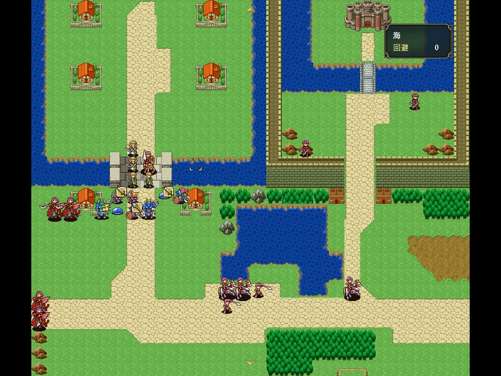 - ジエン達の体力が無くなるとゲームオーバー。こいつらはマップ左の山を目指してその後は待機する。野盗をゴブリンで捌くのはかなり難しく、ある程度ジエンに処理をしてもらったほうが楽。砦のようなオブジェクトはそこにいるユニットが回復するので有効活用する事。